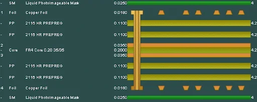 Um Ihre Platine zu optimieren, müssen Sie geeignete Via-Typen auswählen. Dazu gehören beispielsweise Blind-, Buried- und Through-Hole-Vias. Daher ist es sehr hilfreich, die Komplexität der Leiterplatte zu kontrollieren. Darüber hinaus kann die Auswahl der Vias auch die Dicke Ihrer Leiterplatte beeinflussen.