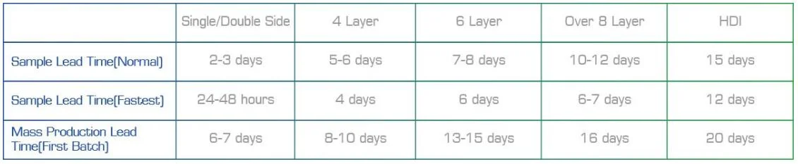 Plazo de entrega del montaje de PCB: